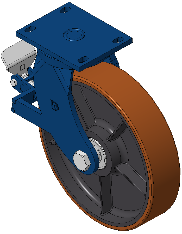 Hoàn thiện sơn màu xanh, lắp đế, khoảng cách lỗ 140x85 Lõi bánh xe bằng gang, gai polyurethane chất lượng cao, màu nâu phay Vòng bi bánh xe—vòng bi cầu chính xác |