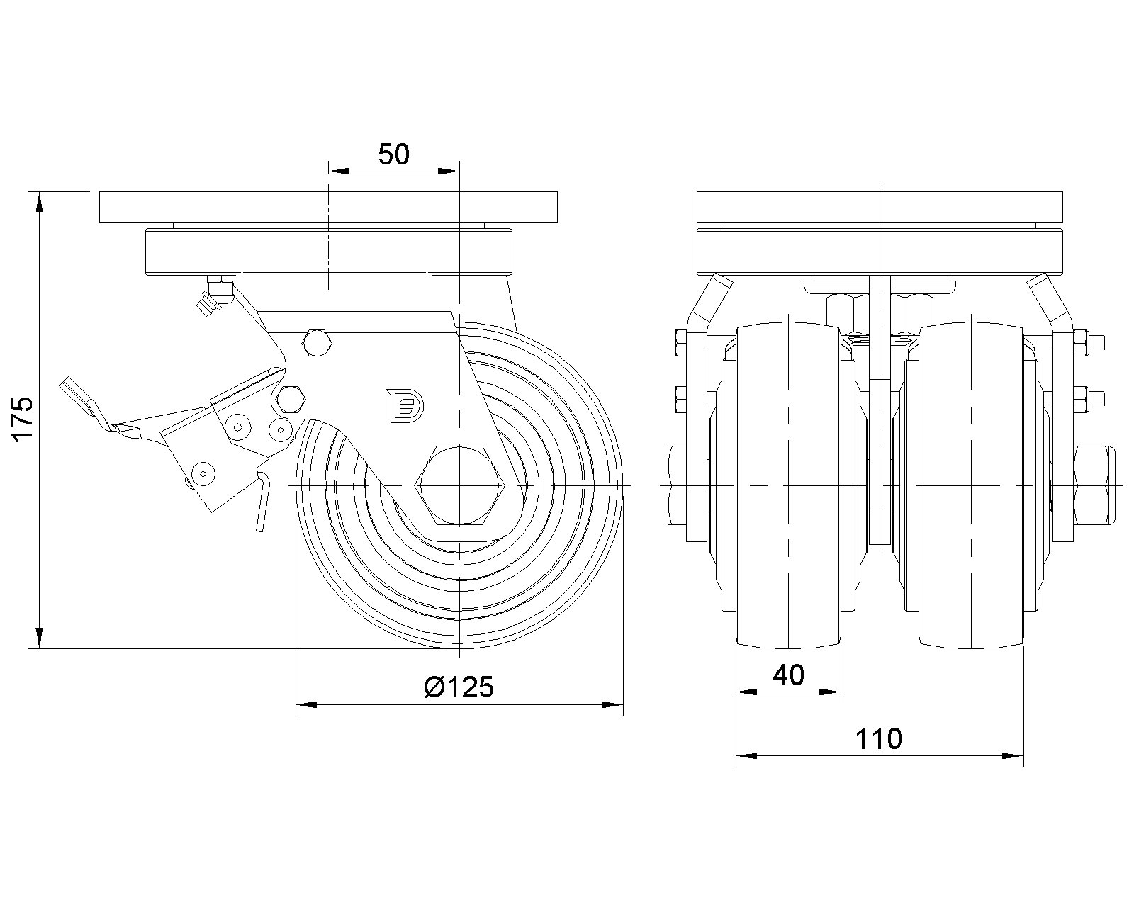 | Bánh xe QPU (Màu nâu vòng cung) đường kính bánh xe × chiều rộng bánh xe 125 x 40mm |