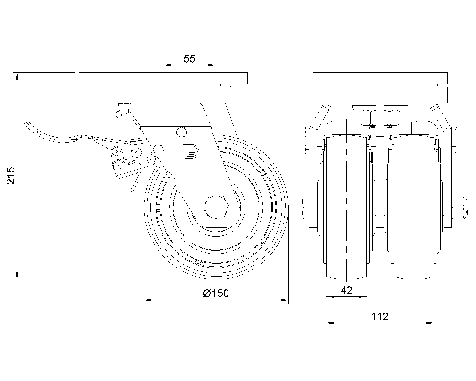 | PU Bánh xe (Vòng cung đỏ) đường kính bánh xe × chiều rộng bánh xe 150 x 42mm |