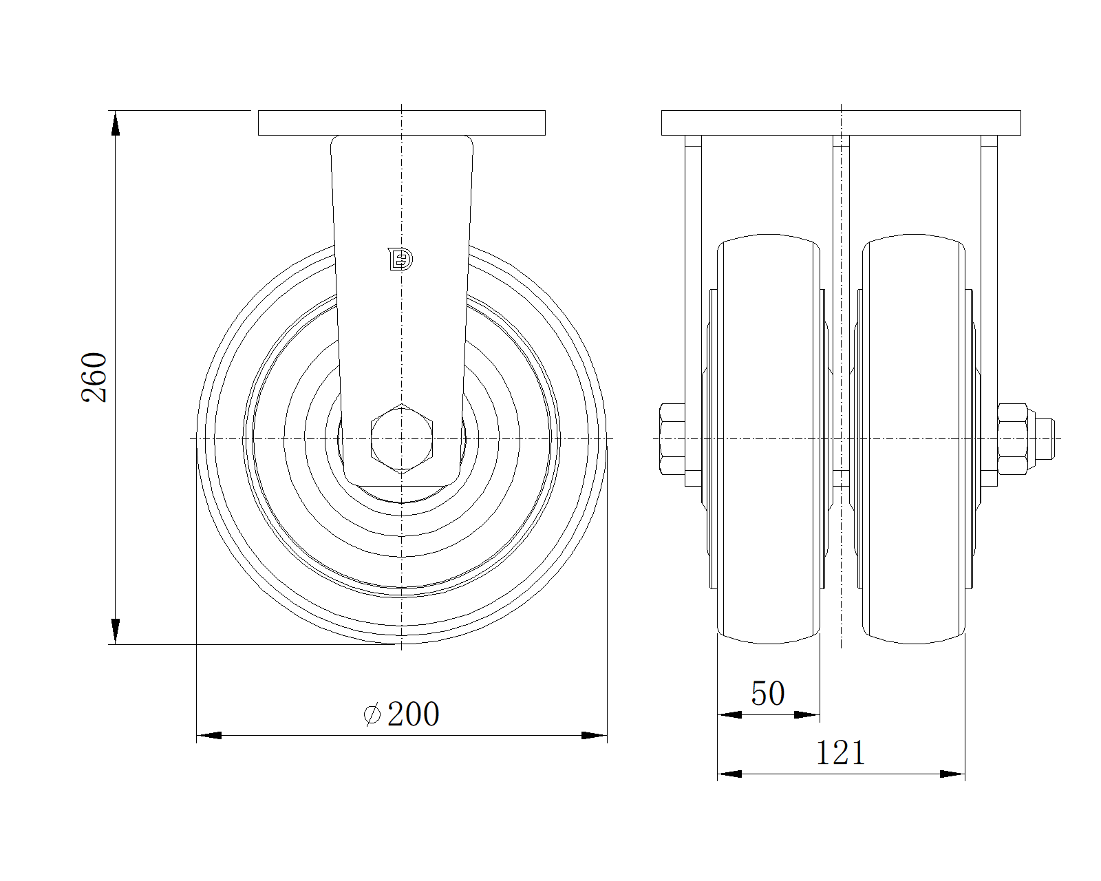| Bánh xe VQPU (hồ quang nâu) Đường kính bánh xe × Chiều rộng bánh xe 200 x 50mm |