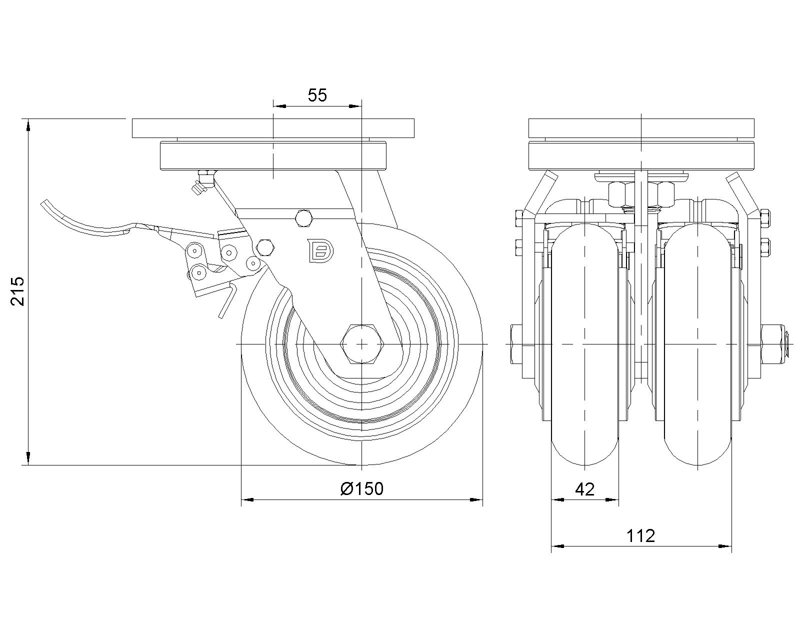 | Bánh xe EQPU (hồ quang nâu) Đường kính bánh xe × Chiều rộng bánh xe 150 x 42mm |