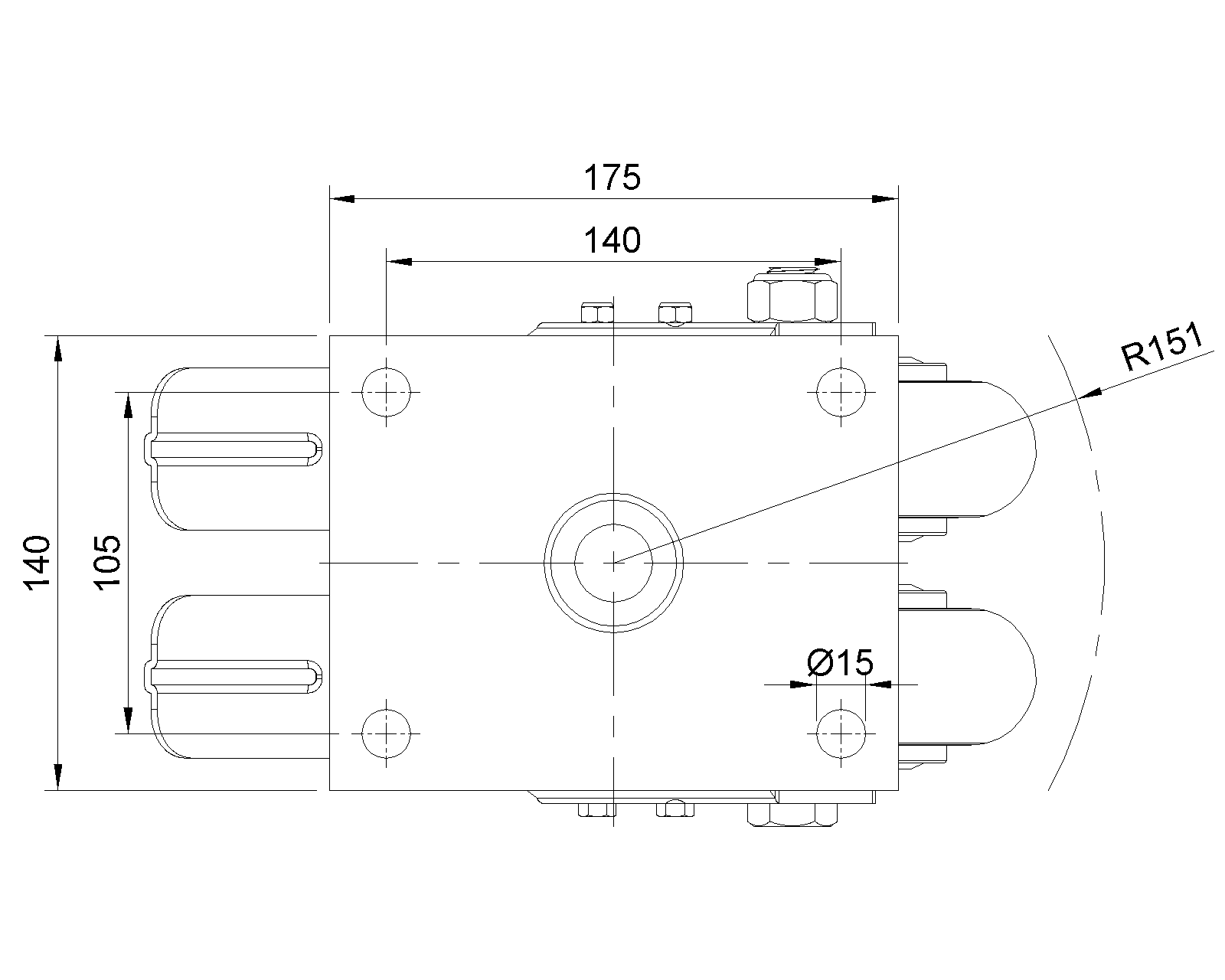 Lắp đế, khoảng cách lỗ 140x105 Lõi bánh xe bằng gang, gai polyurethane chất lượng cao, màu nâu phay Vòng bi bánh xe—vòng bi cầu chính xác |