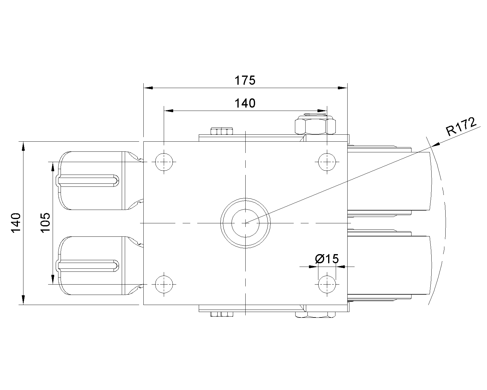 Lắp đế, khoảng cách lỗ 140x105mm Lõi bánh xe bằng gang, gai polyurethane chất lượng cao, phay màu đỏ Vòng bi bánh xe—vòng bi cầu chính xác |