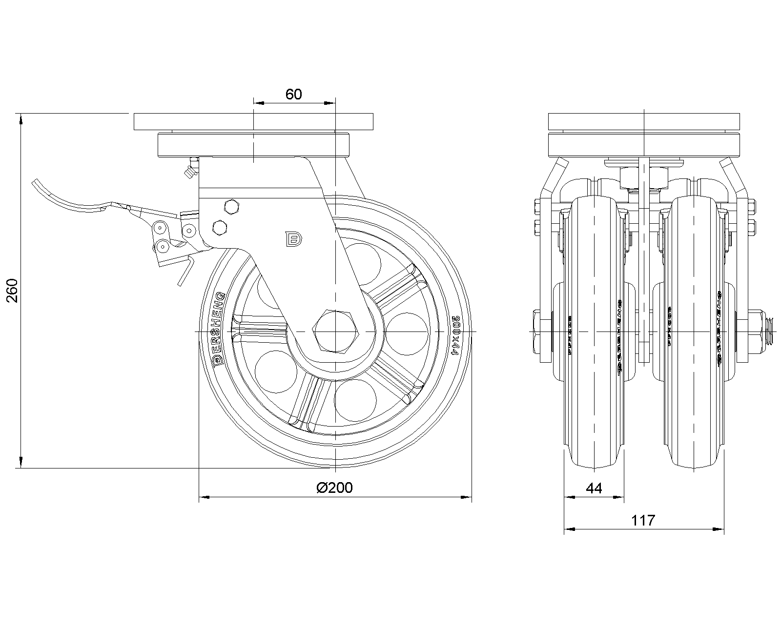 | Kéo NBR Wheel (Mill Raw) Đường kính bánh xe × Chiều rộng bánh xe 200 x 44mm |