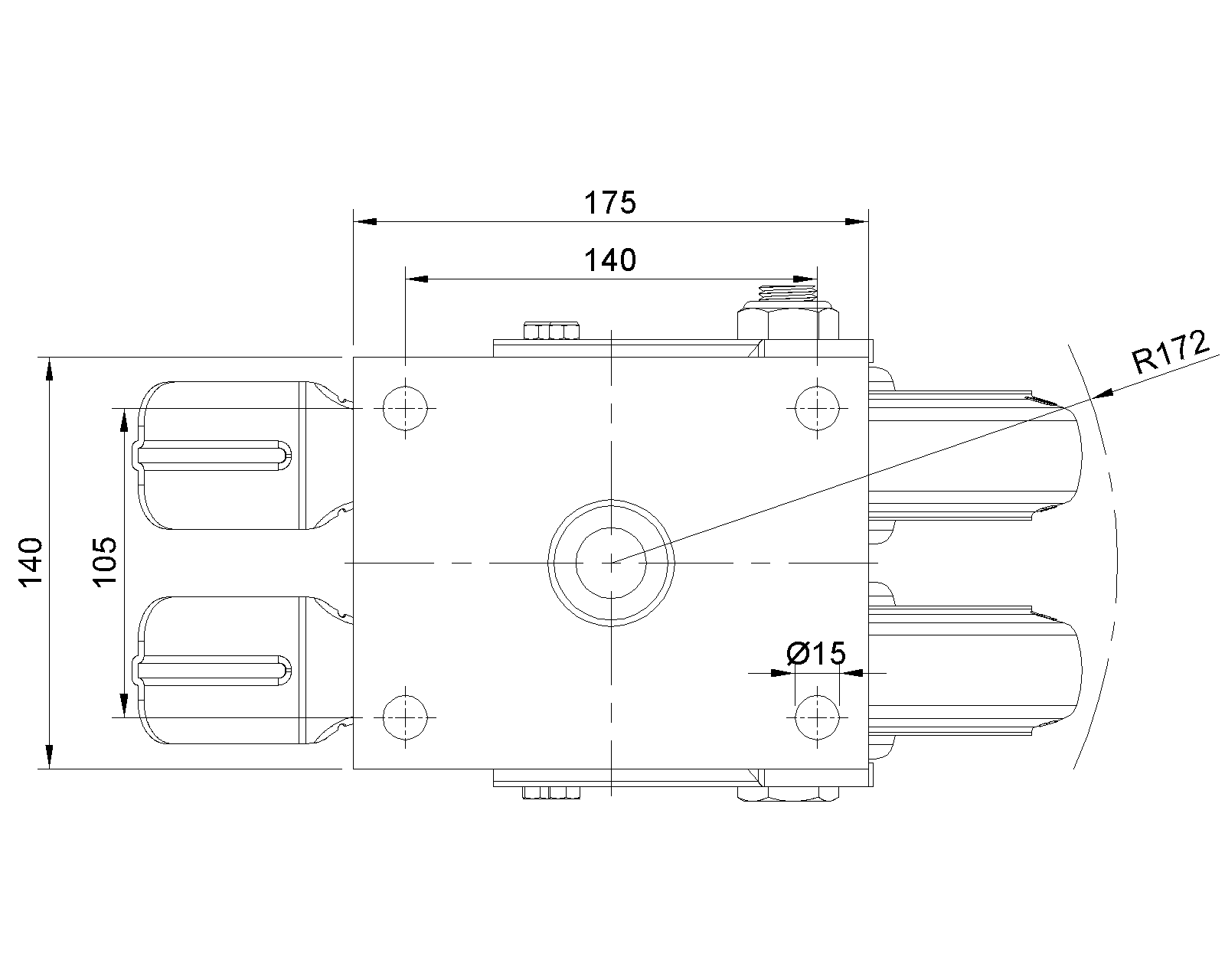 Lắp đế, khoảng cách lỗ 140x105 Lõi bánh xe bằng gang, gai cao su đàn hồi cao chất lượng cao, được phay hoàn thiện tự nhiên Vòng bi bánh xe—vòng bi cầu chính xác |