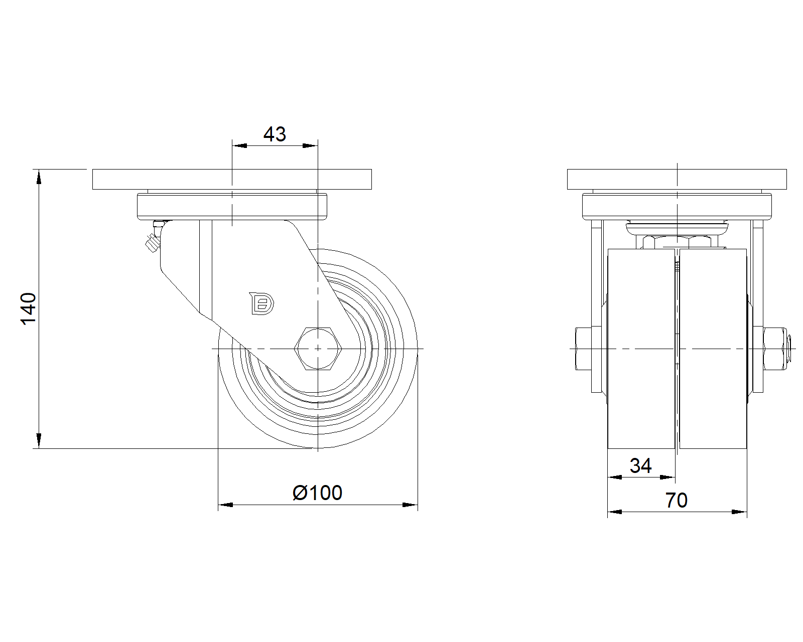 | Bánh xe QPU (nâu phẳng) Đường kính bánh xe × Chiều rộng bánh xe 100 x 34mm |