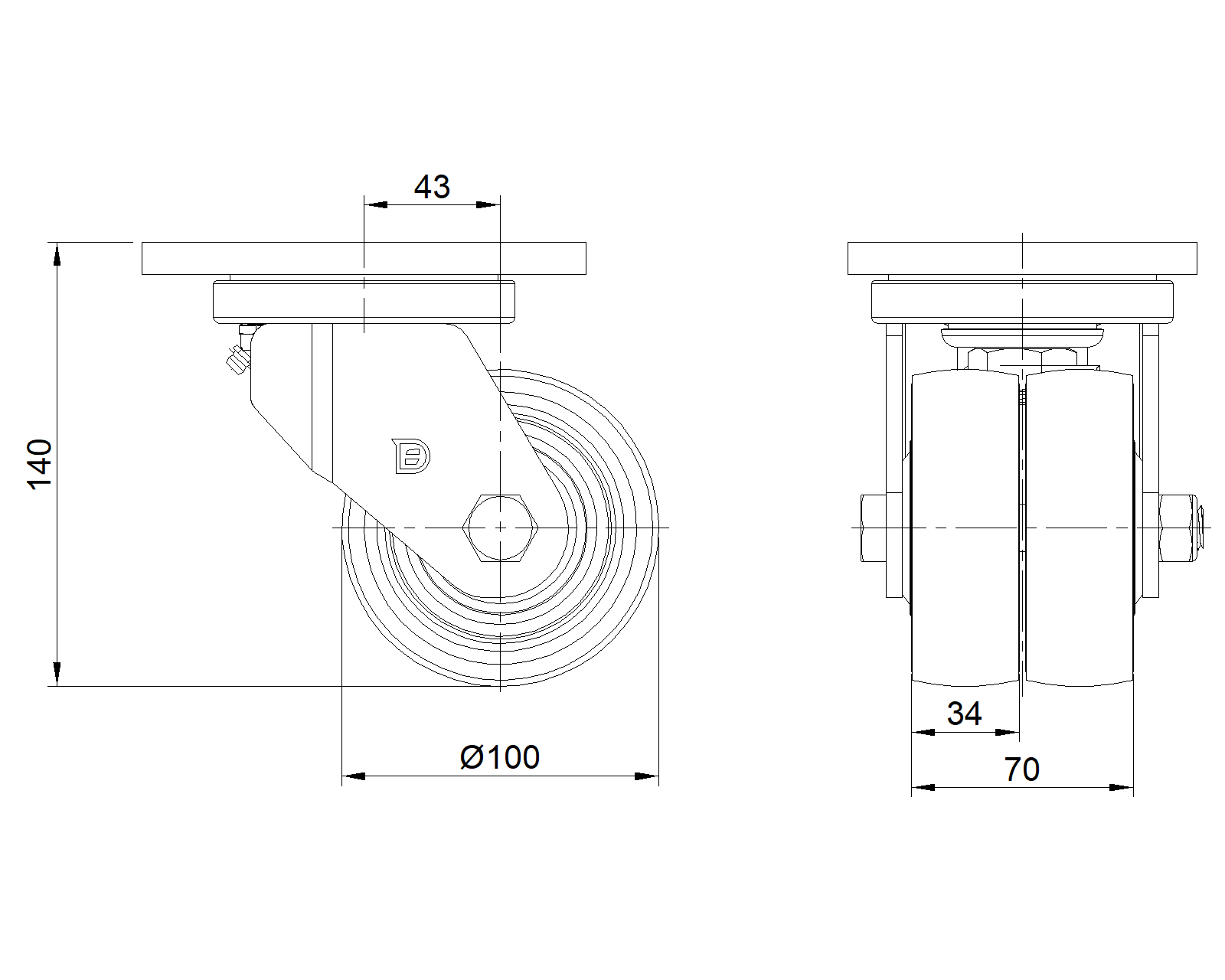 | Bánh xe QPU (hồ quang nâu) đường kính bánh xe × chiều rộng bánh xe 100 x 34mm |