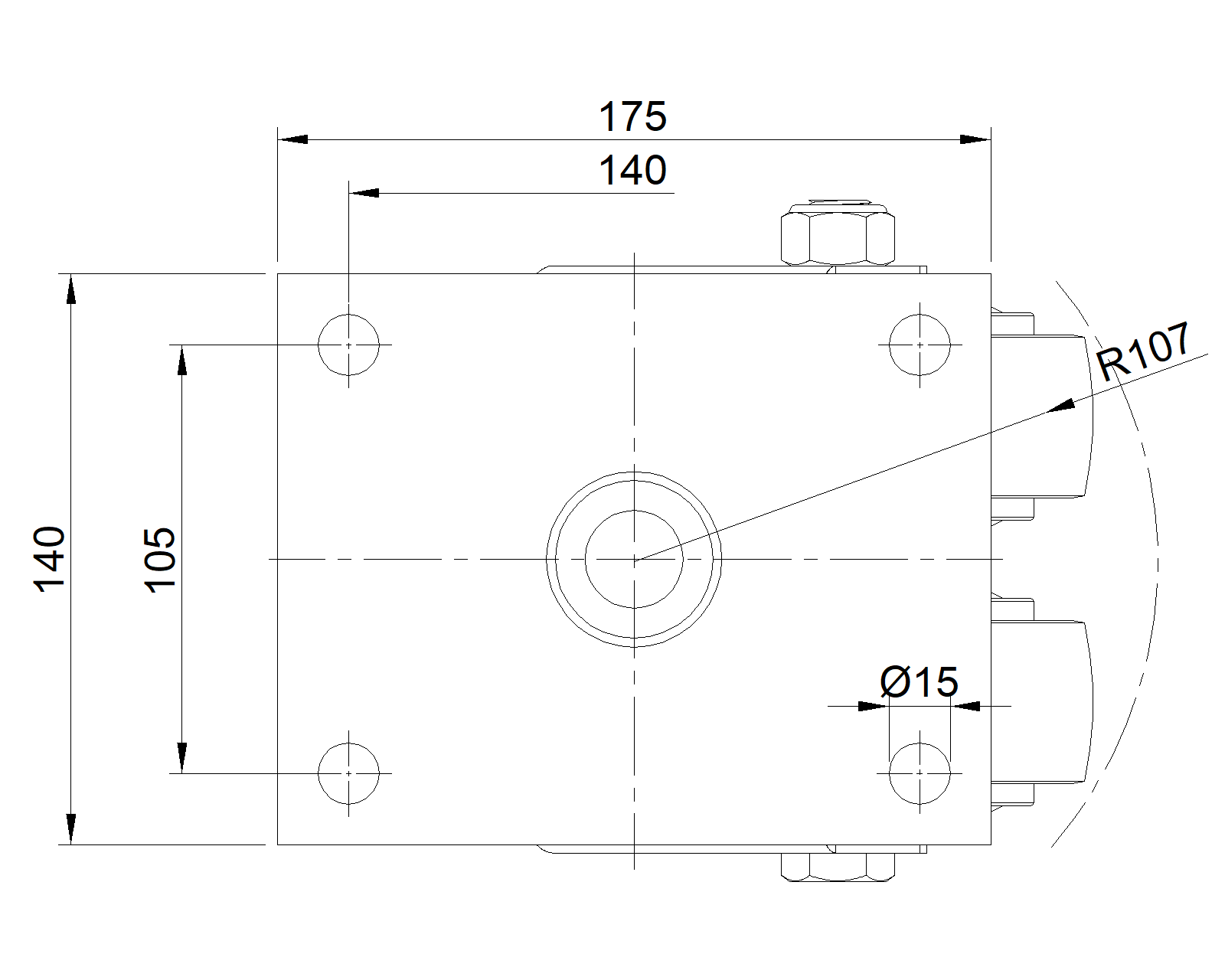 Lắp đế, khoảng cách lỗ 140x105 Lõi bánh xe bằng gang, bề mặt bánh xe bằng polyurethane chất lượng cao, phay màu đỏ Vòng bi bánh xe - bi chính xác |