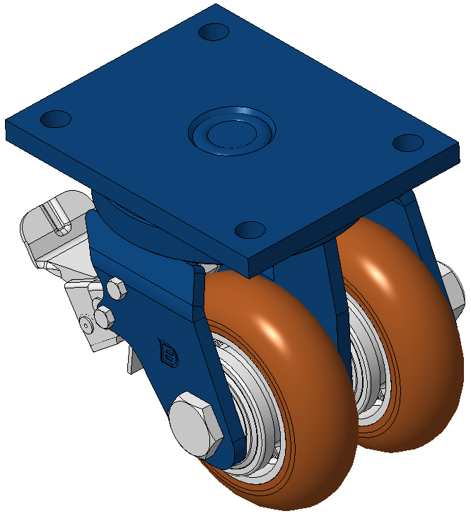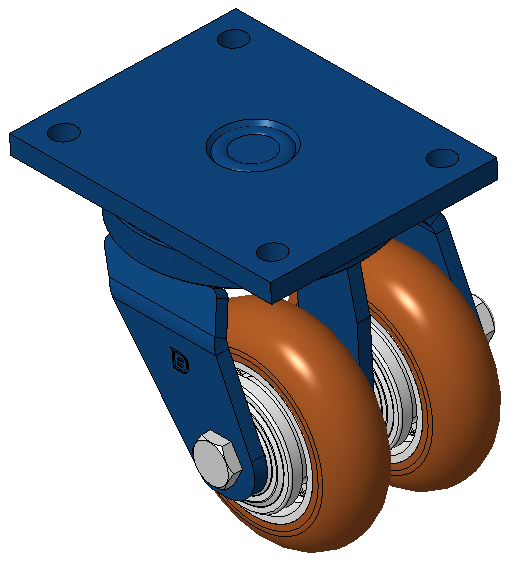 | Bánh xe xoay, khung thép hàn, bề mặt sơn xanh