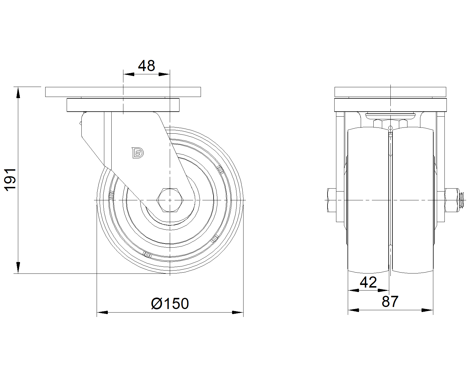 | Bánh xe QPU (Màu nâu vòng cung) đường kính bánh xe × chiều rộng bánh xe 150 x 42mm |