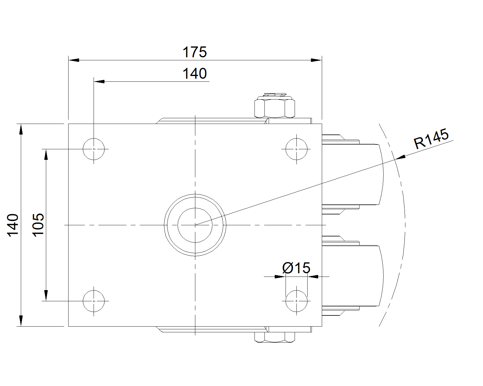 Lắp đế, khoảng cách lỗ 140x105mm Lõi gang với gai polyurethane chất lượng cao, phay màu nâu Vòng bi bánh xe - vòng bi chính xác |