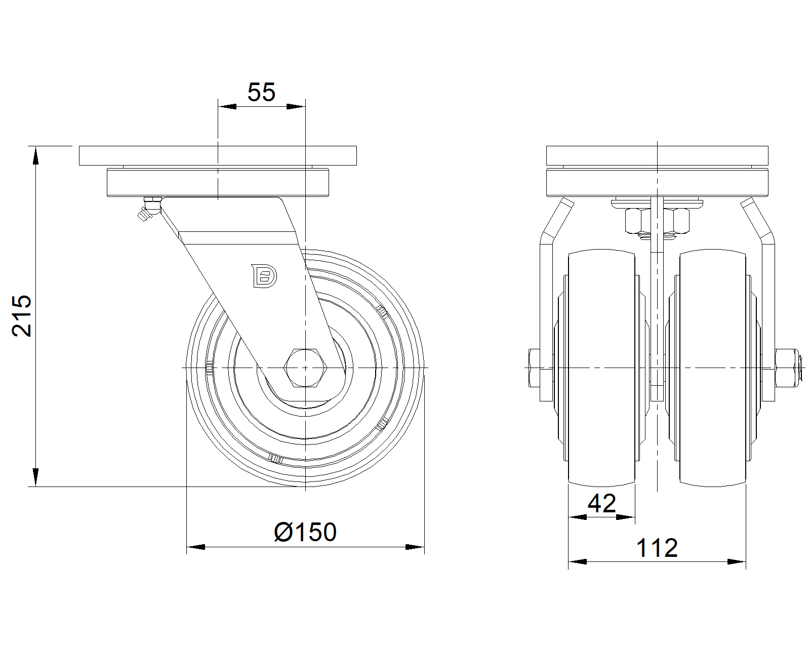 | Bánh xe QPU (Màu nâu vòng cung) đường kính bánh xe × chiều rộng bánh xe 150 x 42mm |