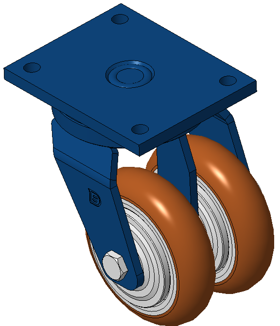 | Bánh xe xoay, khung thép hàn, bề mặt sơn xanh