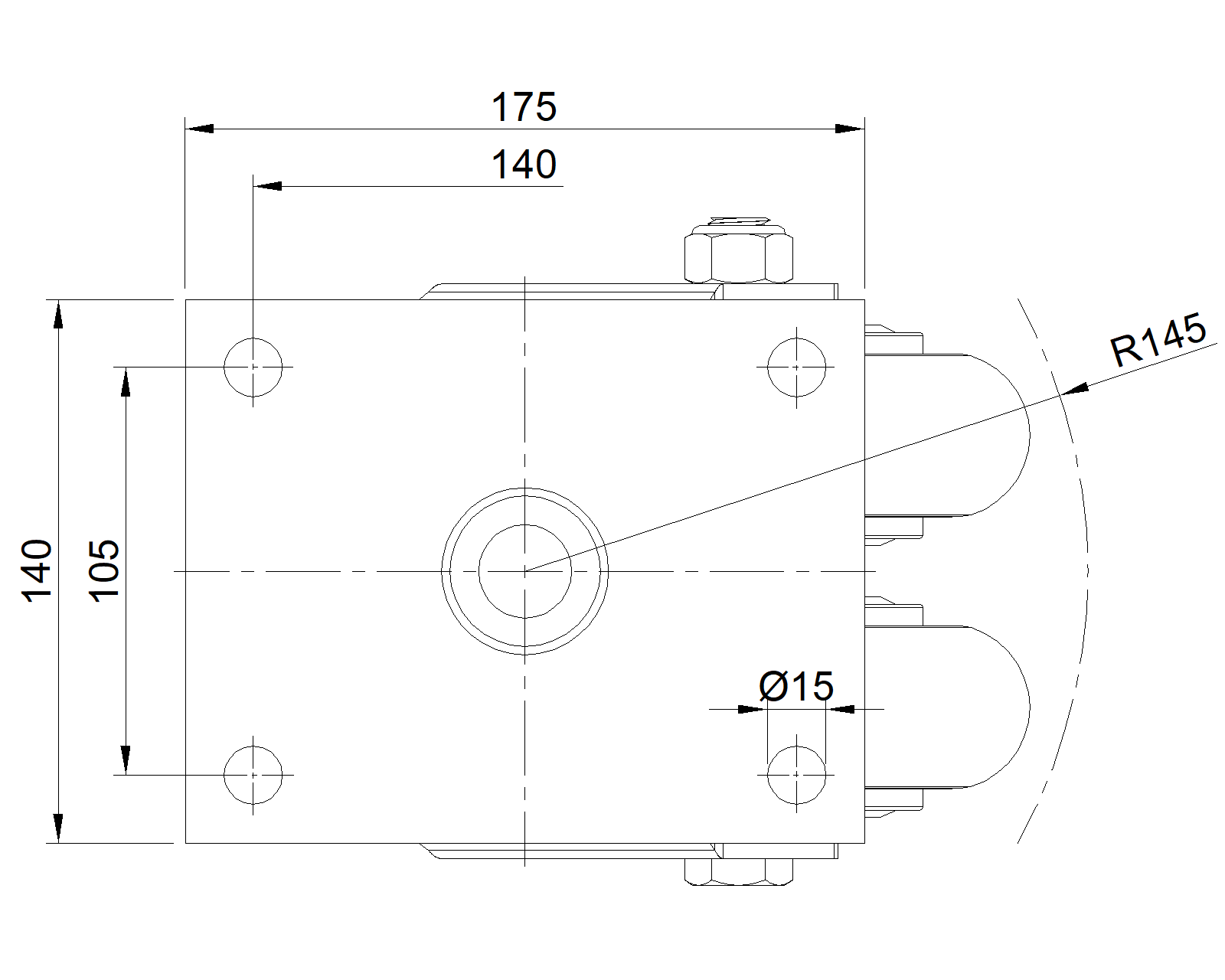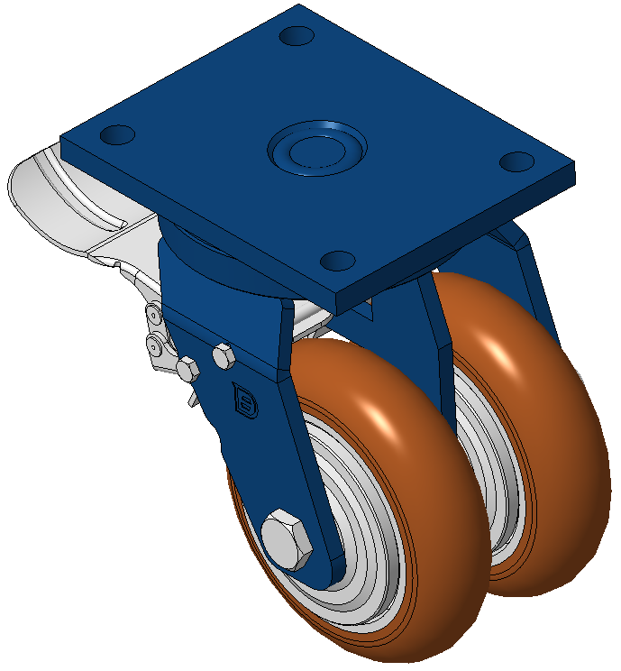 Lắp đế, khoảng cách lỗ 140x105 Lõi bánh xe bằng gang, bề mặt bánh xe bằng polyurethane chất lượng cao, phay màu nâu Vòng bi bánh xe - bi chính xác |