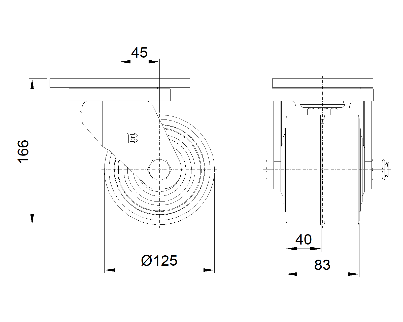 | Bánh xe QPU (nâu phẳng) Đường kính bánh xe × Chiều rộng bánh xe 125 x 40mm |