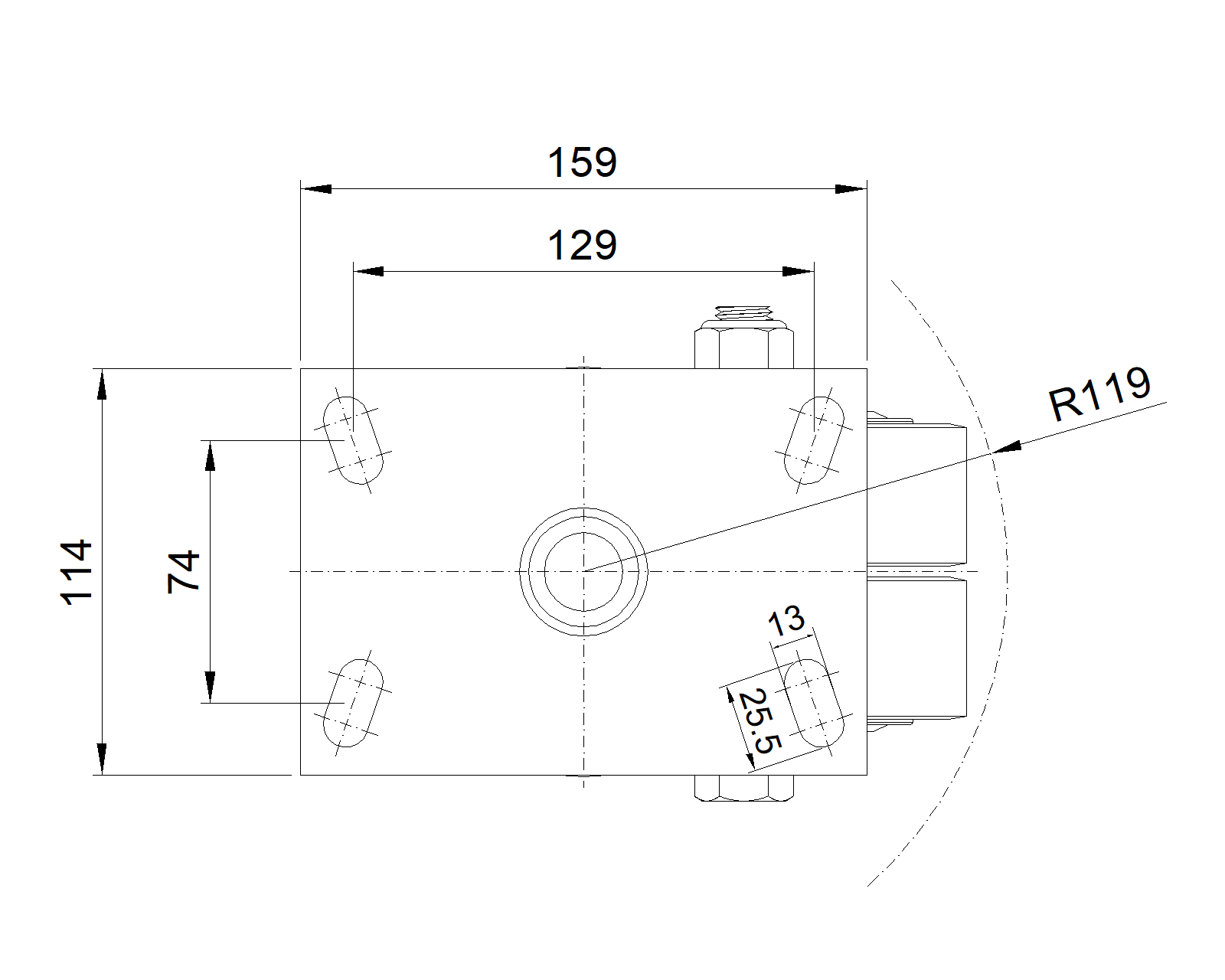 Lắp đế, khoảng cách lỗ 129x74. Lõi bánh xe bằng gang với gai polyurethane chất lượng cao, phay màu nâu. Vòng bi bánh xe—vòng bi chính xác. |