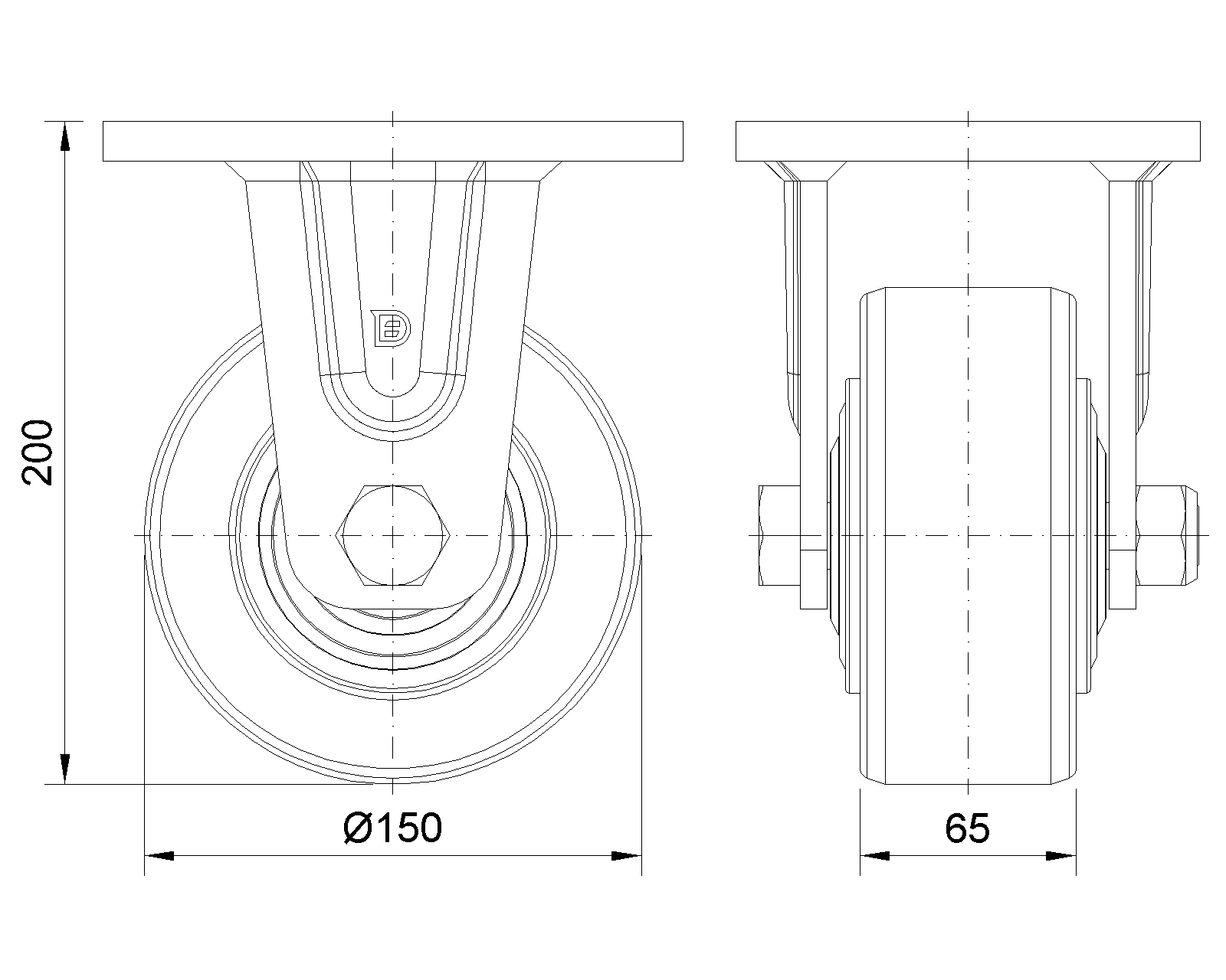 | Bánh xe cố định, khung thép hàn, sơn phủ màu xanh Lắp đế, khoảng cách lỗ 140x105mm Lõi gang, mặt lốp polyurethane chất lượng cao Màu đỏ tía phay, ổ trục bánh xe – ổ bi chính xác |