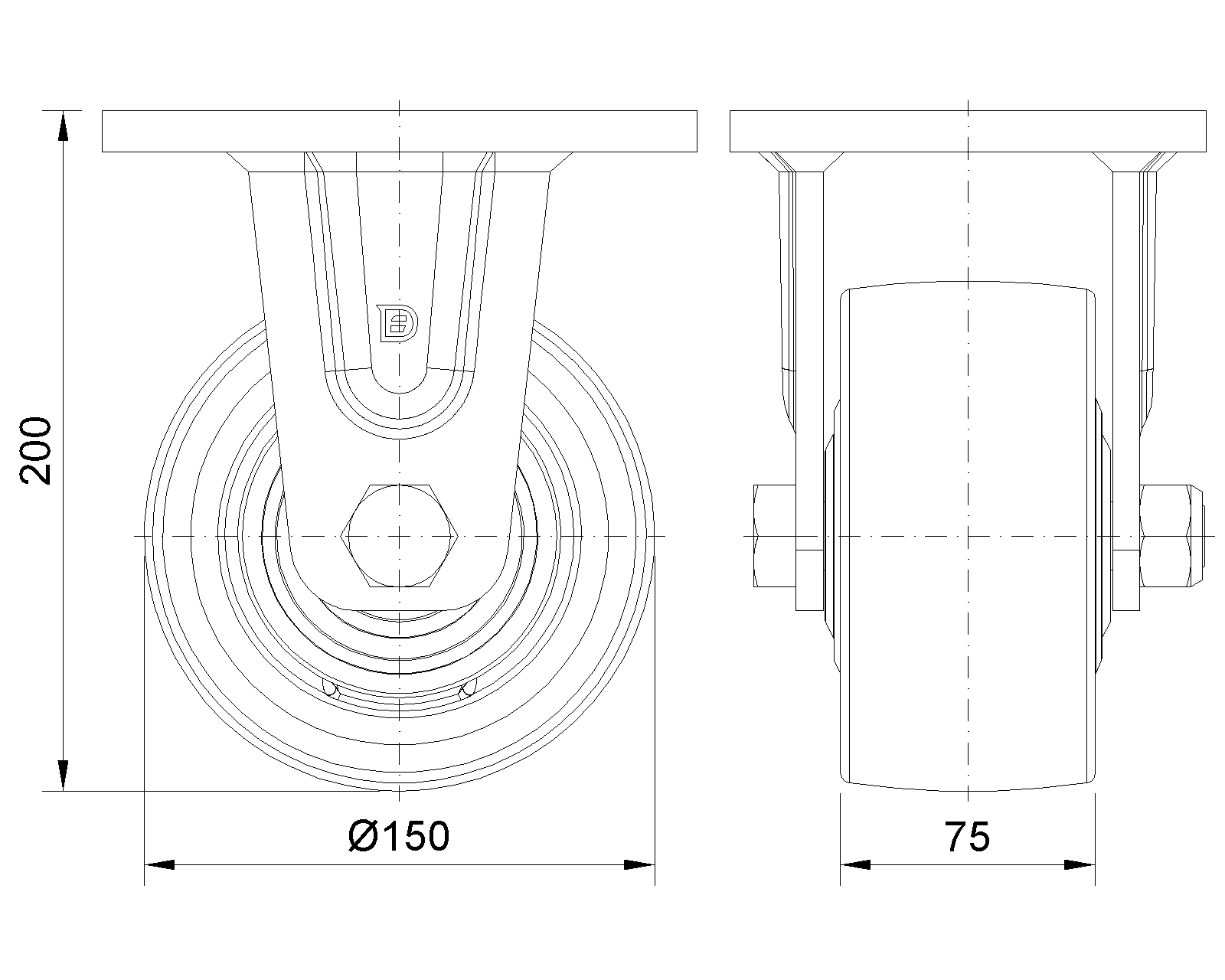 | Bánh xe HPU (màu nâu cam vàng) - Đường kính × Chiều rộng bánh xe: 150 x 75mm |
