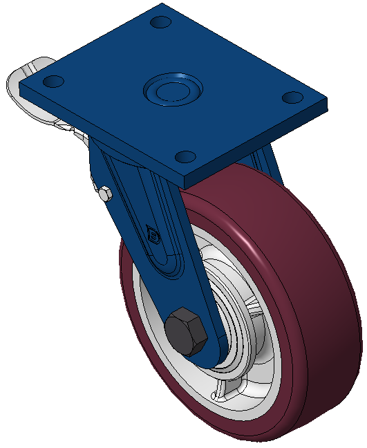 | Bánh xe phanh sau, khung thép hàn, sơn xanh Lắp đế, khoảng cách lỗ 140x105mm Lõi bánh xe bằng gang, gai polyurethane chất lượng cao, phay màu đỏ tía Vòng bi bánh xe – vòng bi bi chính xác |