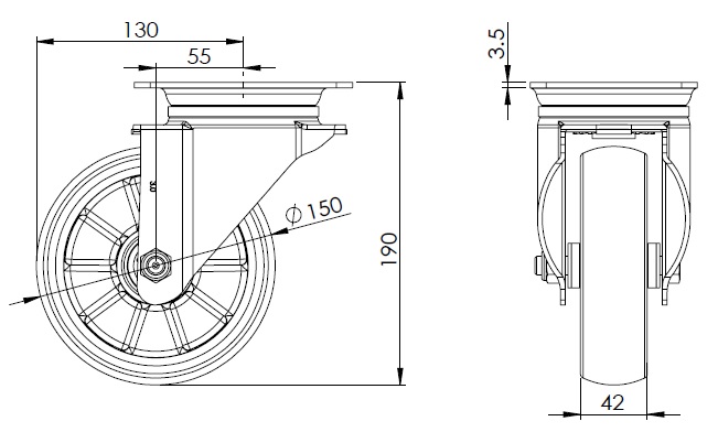 | Wheel tread: high quality polyurethane Wheel Center: aluminum core Drawings are for reference only and may differ from the product |