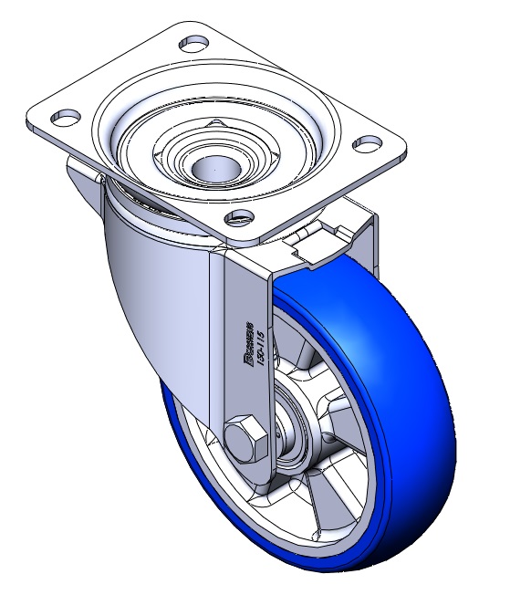 Zine-Plated, Mounting Type - Top Plate. Aluminum wheel center with High Quality Polyurethane Wheel Tread. Blue color, Bearing—Ball Bearings. |