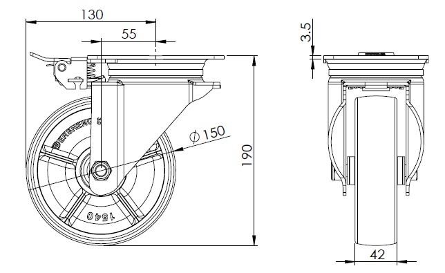 | Wheel tread: high quality polyurethane Wheel Center: iron core/cast iron core Drawings are for reference only and may differ from the product |