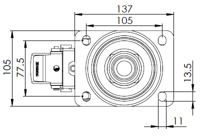 Zine-Plated, Mounting Type - Top Plate. Cast Iron Wheel Center with High Quality Polyurethane Wheel Tread. Brown color, Bearing: Ball Bearings. |