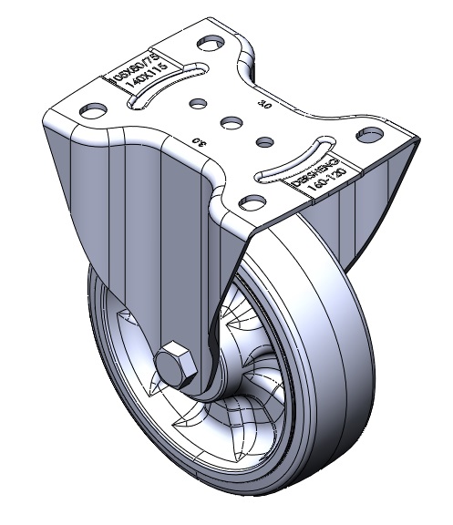 Hoàn thiện mạ kẽm, lắp đế Lõi polypropylene gia cố, chống va đập với mặt đế bằng nhựa nhiệt dẻo đàn hồi (TPR) Vòng bi chính xác màu xám đậm. |
