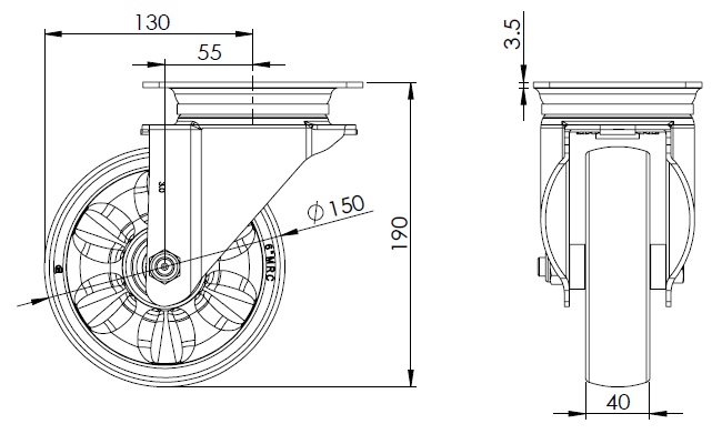 | WMRC đường kính bánh xe × chiều rộng bánh xe 150 x 40mm |