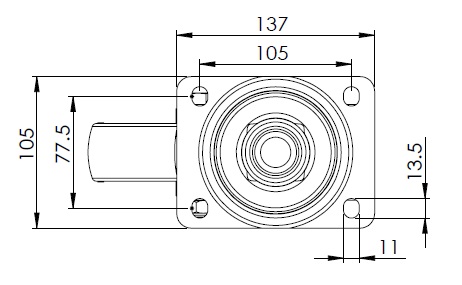 | Bánh xe xoay với đế đinh tán và khung dập.