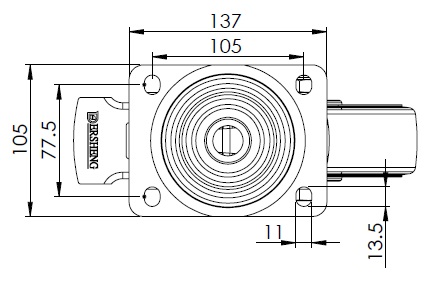 | Bánh xe có phanh sau và hệ thống khóa. Đế bánh xe được tán đinh và dập.