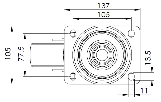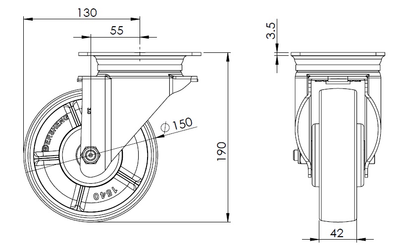 | Bánh xe QPU (màu nâu) đường kính bánh xe × chiều rộng bánh xe 150 x 42mm |