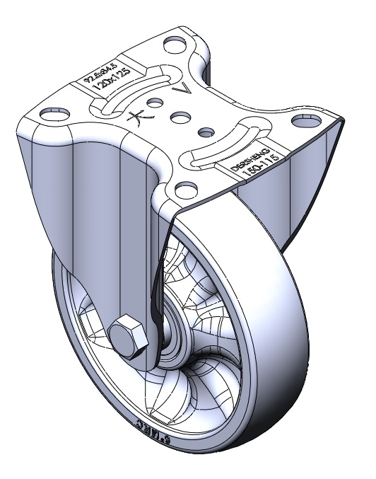 Hoàn thiện mạ kẽm, lắp đế. Lõi bánh xe và mặt bánh xe bằng nhựa nhiệt dẻo gia cố. Vòng bi bánh xe—vòng bi chính xác. |