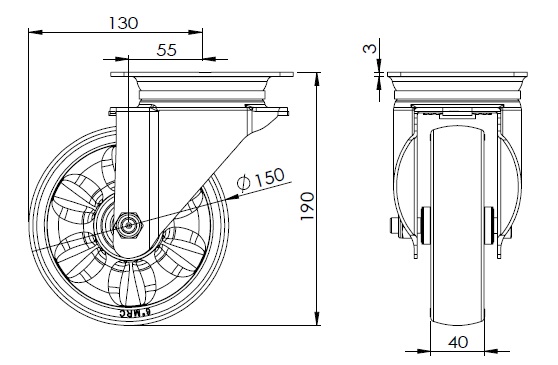 | WMRC đường kính bánh xe × chiều rộng bánh xe 150 x 40mm |