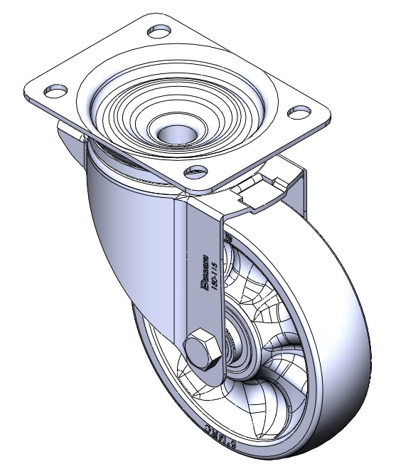 | Bánh xe xoay với đế đinh tán và khung dập.