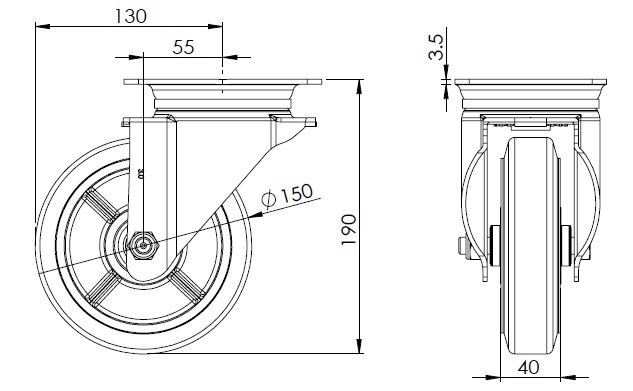 | Bánh xe NBR Đường kính bánh xe × chiều rộng bánh xe 150 x 40 mm |