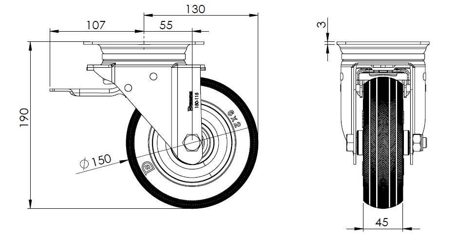 | Đường kính bánh xe samsung × chiều rộng bánh xe 150 x 45mm |