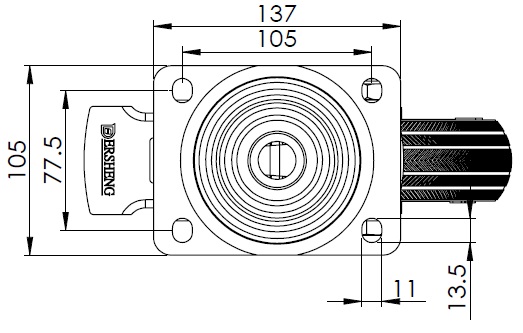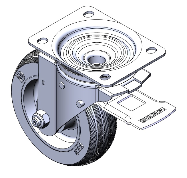 | Bánh xe có phanh sau và hệ thống khóa. Đế bánh xe được tán đinh và dập.