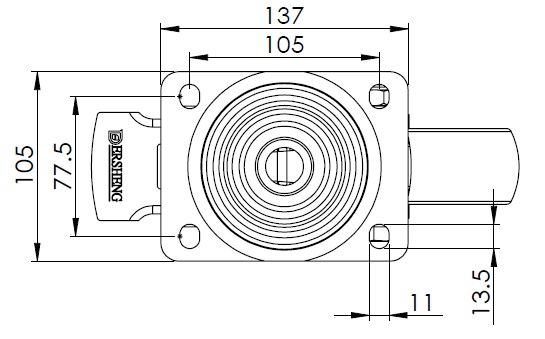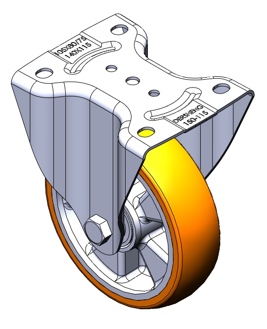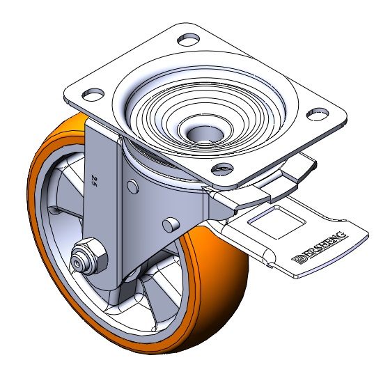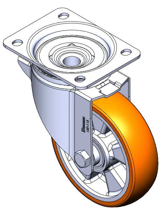 | Bánh xe có phanh sau và hệ thống khóa. Đế bánh xe được tán đinh và dập.