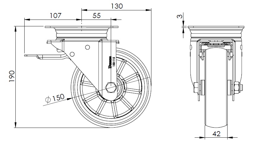 | Bánh xe AQPU (màu nâu) đường kính bánh xe × chiều rộng bánh xe 150 x 42mm |