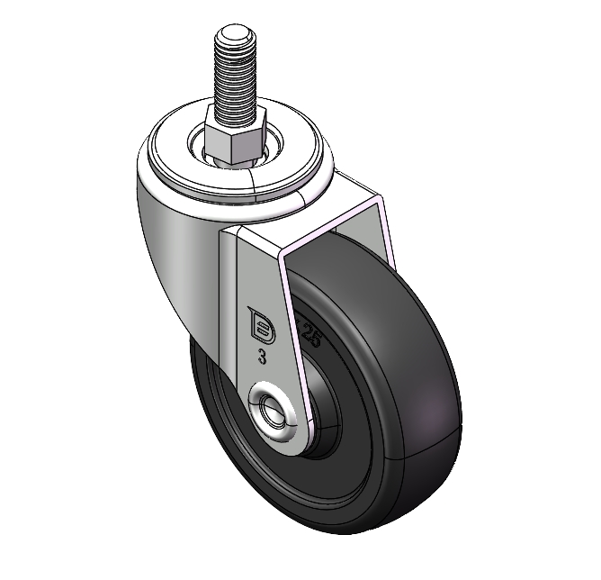 Bề mặt mạ kẽm, thiết bị lắp ren Lõi bánh xe bằng nhựa nhiệt dẻo, bề mặt bánh xe bằng cao su đàn hồi chất lượng cao Bánh xe—loại ống trung tâm |