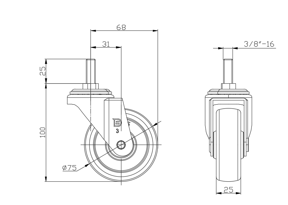 | Bánh xe cao su Đường kính bánh xe × chiều rộng bánh xe 75 x 25mm |