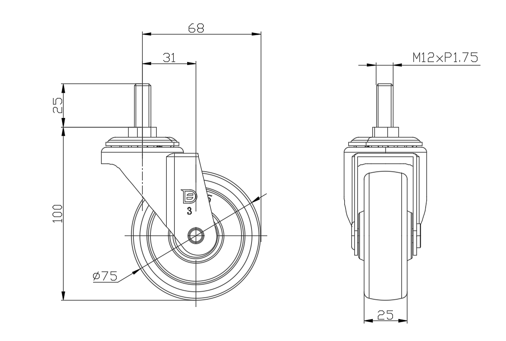 | Bánh xe di động, chân ren dập—M12-P1.75