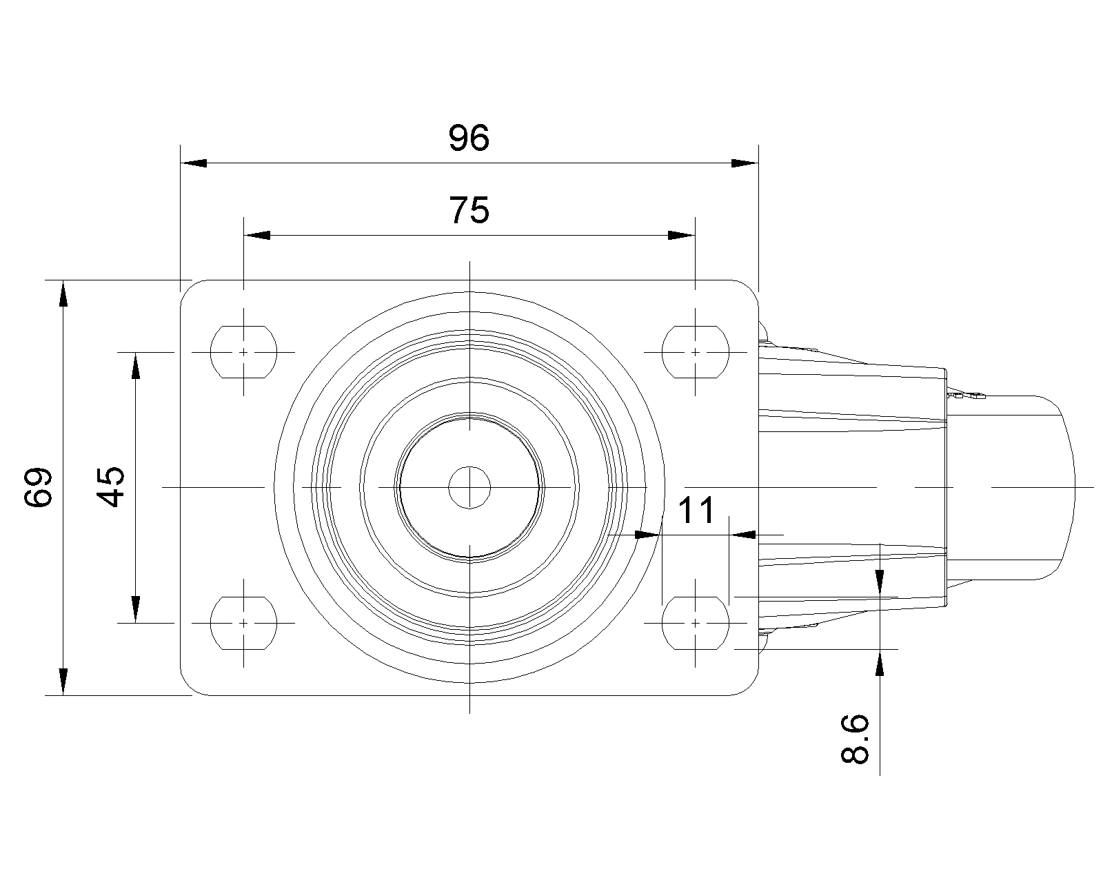 固定式脚轮,高级底板—75x45斜孔底板 黑色脚架采用聚醯胺增强料,底板式安装 防銹,耐腐蚀,美观,经济,转动灵活 耐冲击聚丙烯轮芯,热塑性弹性体(TPR)轮面 黑黑色,轮子轴承—精密滚珠 |