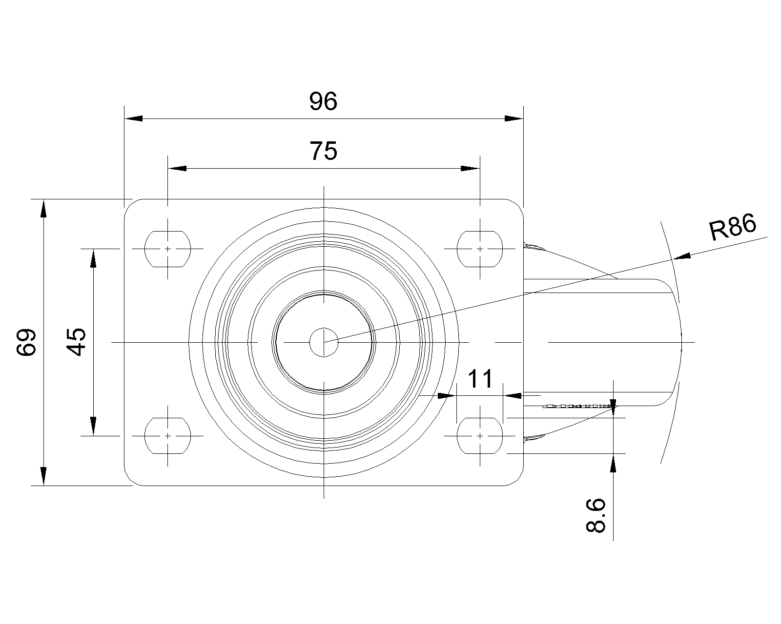 活动式脚轮,高级底板—75x45斜孔底板 黑色脚架采用聚醯胺增强料,底板式安装 防銹,耐腐蚀,美观,经济,转动灵活 耐冲击聚丙烯轮芯,热塑性弹性体(TPR)轮面 黑色,轮子轴承—精密滚珠 |