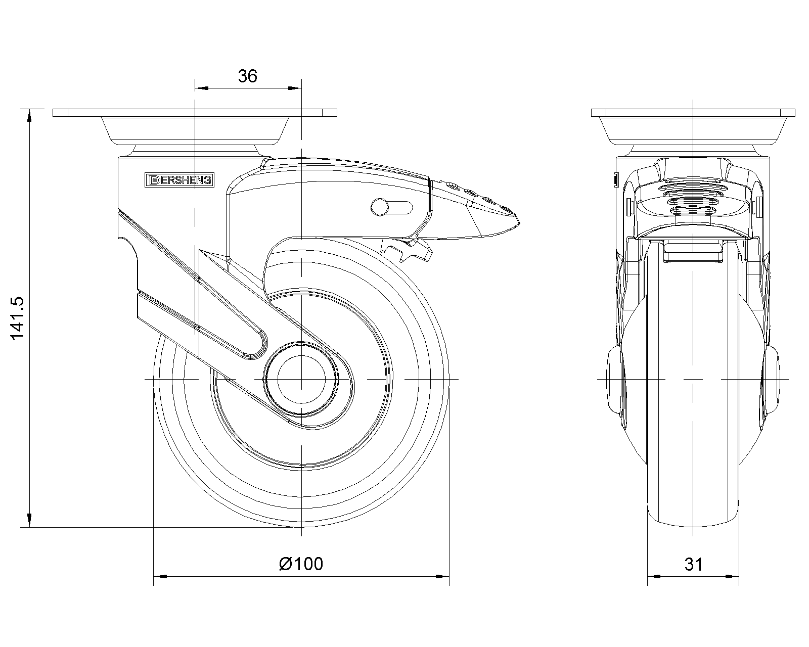 | PPR轮(中管式)(黑黑色)轮径×轮宽100x 31mm |
