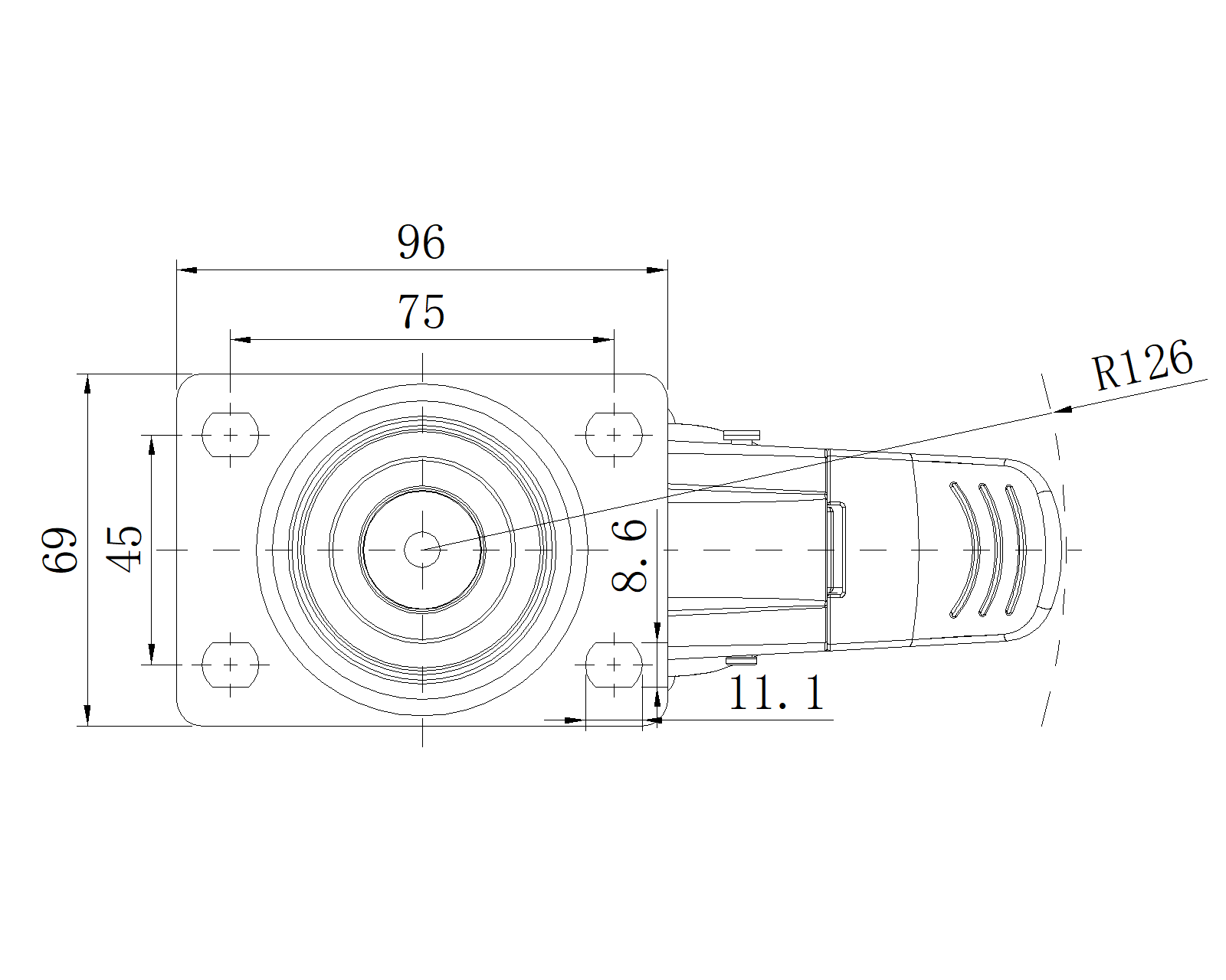 定向煞式锁定系统的脚轮,75x45斜孔底板 黑色脚架采用聚醯胺增强料,底板式安装 防銹,耐腐蚀,美观,经济,转动灵活 耐冲击聚丙烯轮芯,热塑性弹性体(TPR)轮面 黑色,轮子轴承—精密滚珠 |