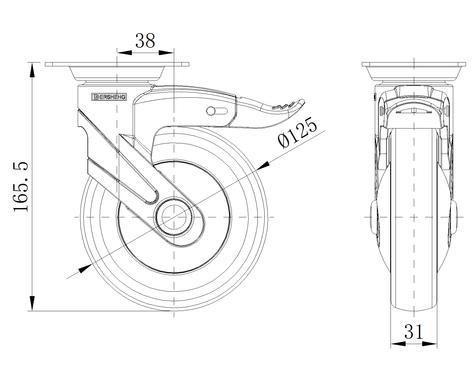 | PPR轮(黑黑色)轮径×轮宽125x 31mm |