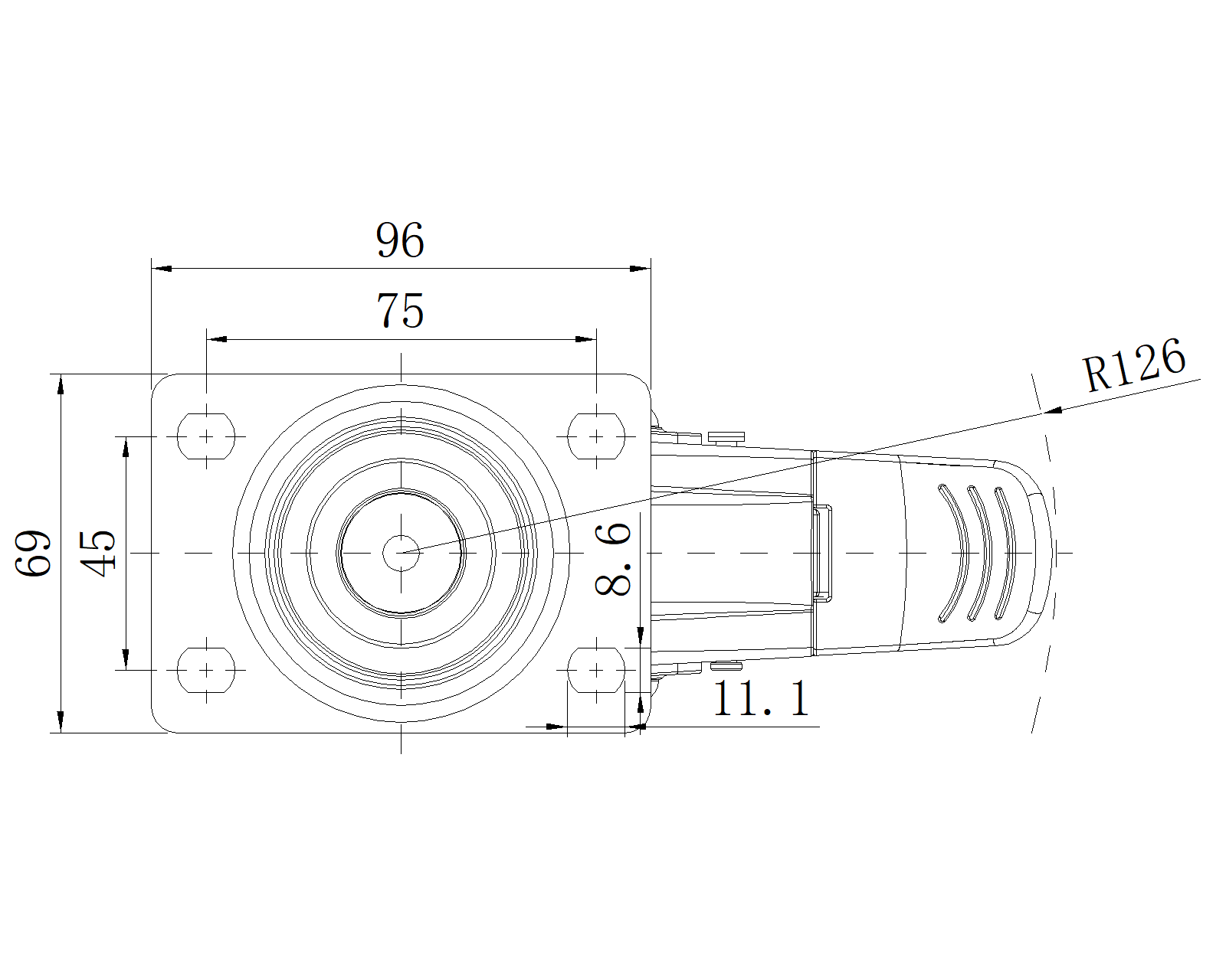 定向煞式锁定系统的脚轮,75x45斜孔底板 黑色脚架采用聚醯胺增强料,底板式安装 防銹,耐腐蚀,美观,经济,转动灵活 耐冲击聚丙烯轮芯,热塑性弹性体(TPR)轮面 黑色,轮子轴承—精密滚珠 |