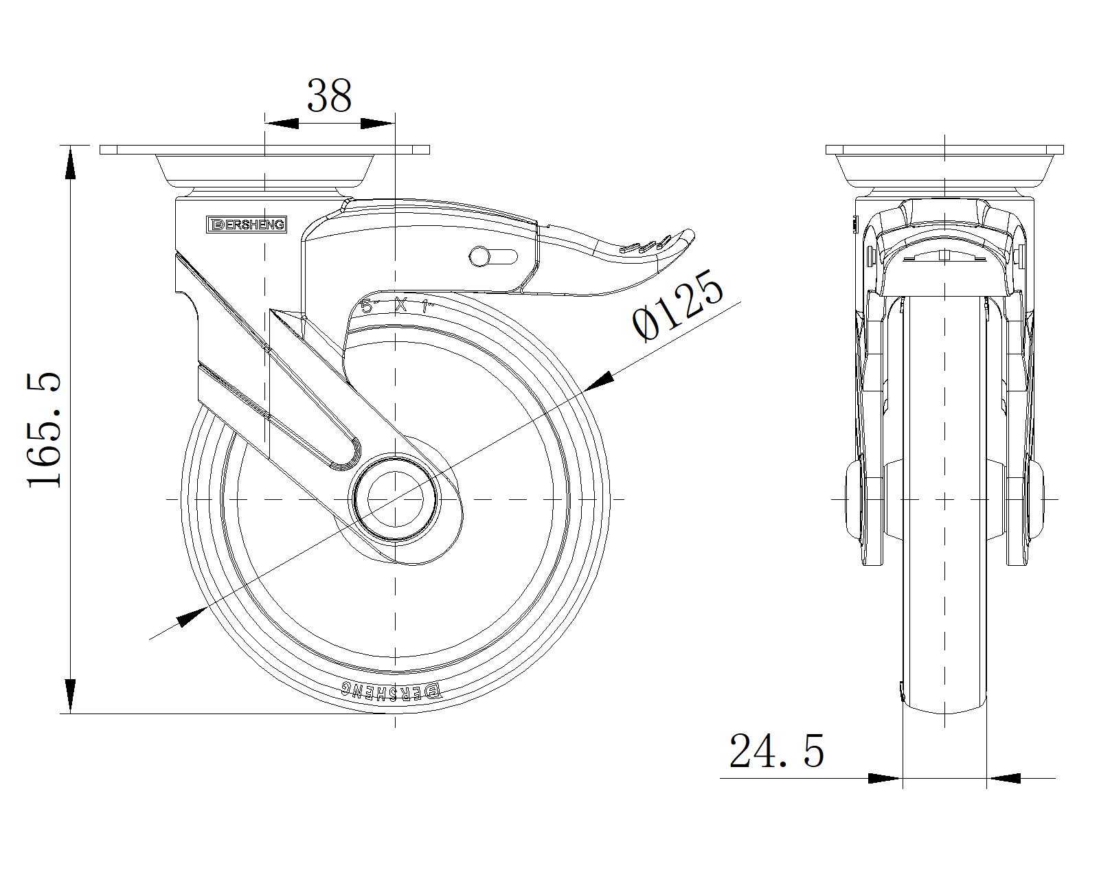 | 经典PPR轮(黑黑色-中管式中宽37)轮径×轮宽125x 24.5mm |